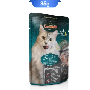 پوچ گربه لئوناردو با طعم ماهی و میگو وزن 85 گرم Leonardo