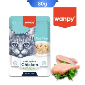 پوچ گربه طعم ماهی کاد برای تقویت سیستم گوارشی ونپی (Wanpy) وزن 80 گرم