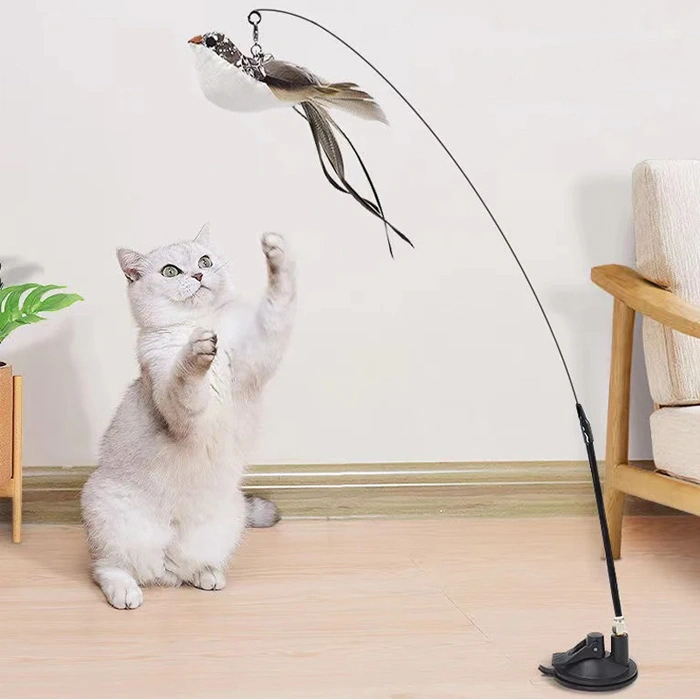 این میله‌ی بلند و انعطاف‌پذیر در یک سر خودش عروسک پرنده‌ای جذاب به همراه پر داره که مثل یک شکار واقعی، گربه‌تون رو به بازی و تعقیب دعوت می‌کنه. سر دیگر میله یک پایه‌ی محکم با چسب قوی داره که می‌تونید اون رو به زمین یا دیوار بچسبونید تا دلبندتون حتی وقتی شما خونه نیستید، ساعت‌ها سرگرم باشه.
