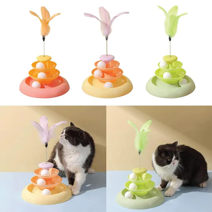 - اسباب بازی برج سه طبقه با سه عدد توپ برای گربه ها