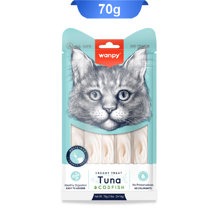 بستنی گربه ونپی طعم ماهی تن و کدفیش بسته 5 عددی | Wanpy Creamy Treat Tuna & Codfish