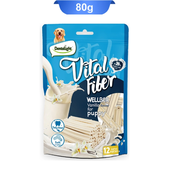 تشویقی توله سگ دنتالایت مدل پاپی طعم شیر و وانیل وزن 80 گرم Dentalight Vital Fiber Puppy