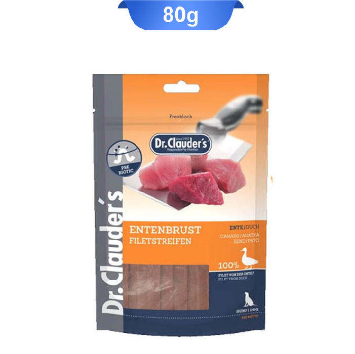 تشویقی سگ دکتر کلادرز مدل نواری طعم اردک وزن 80 گرم Dr.Clauder’s Filetstreifen Duck