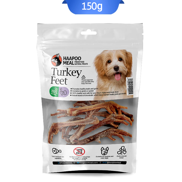 تشویقی سگ هاپومیل مدل پای بوقلمون وزن 150 گرم HaapooMeal Turkey Feet