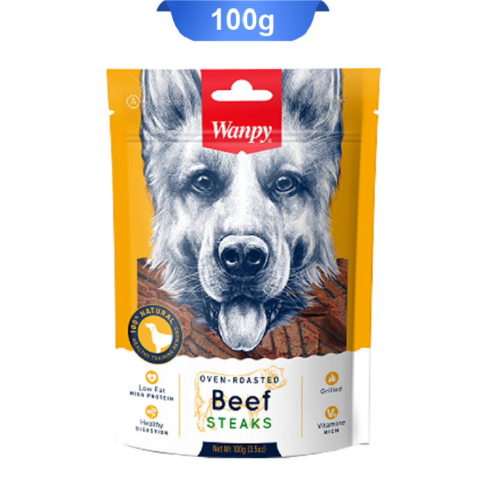 تشویقی سگ ونپی مدل استیک طعم گوشت وزن 100 گرم Wanpy Beef Steaks