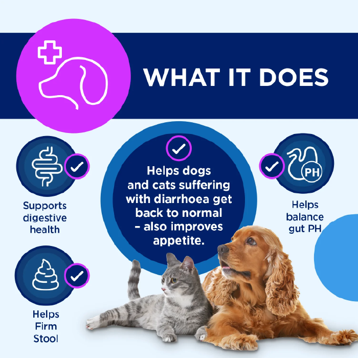 فرمولاسیون علمی و اثربخش این محصول، آن را به انتخابی حرفهای در مواقعی مانند اسهال، استرس، تغییر رژیم غذایی، مصرف آنتیبیوتیک یا مسافرتهای حیوانات خانگی تبدیل کرده است.
