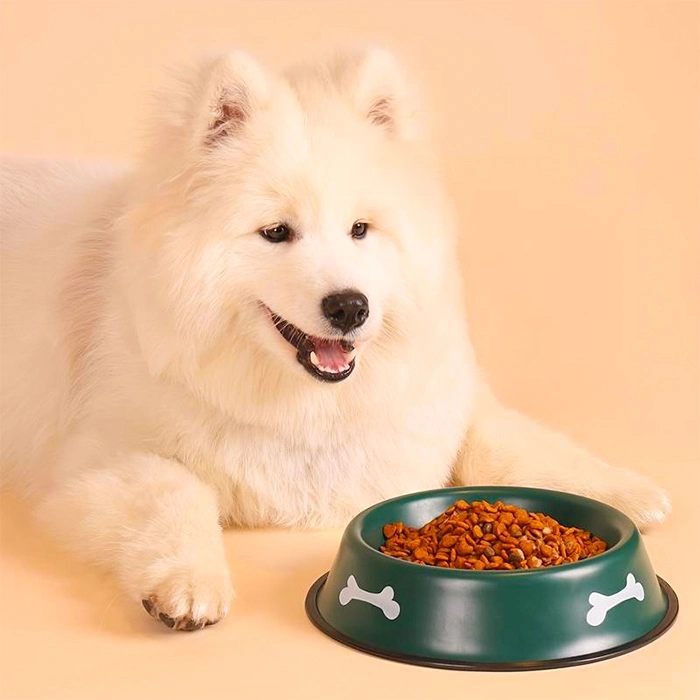 ظرف آب و غذای سگ و گربه از جنس فلز لعاب دار طرح استخوان قطر 26 سانتی متر کد 106048