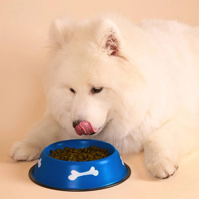 ظرف آب و غذای سگ و گربه از جنس فلز لعاب دار طرح استخوان قطر 21/5 سانتی متر کد 106047