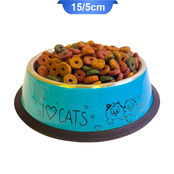 ظرف آب و غذای گربه و سگ استیل رنگی مدل لاو (I Love Cats) قطر 15/5 سانتی متر کد 106055