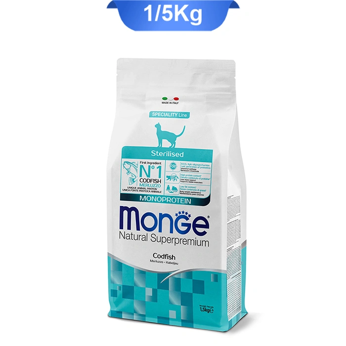 غذاخشک گربه عقیم شده مونژه طعم ماهی کاد وزن 1/5 کیلوگرم Monge Sterilised