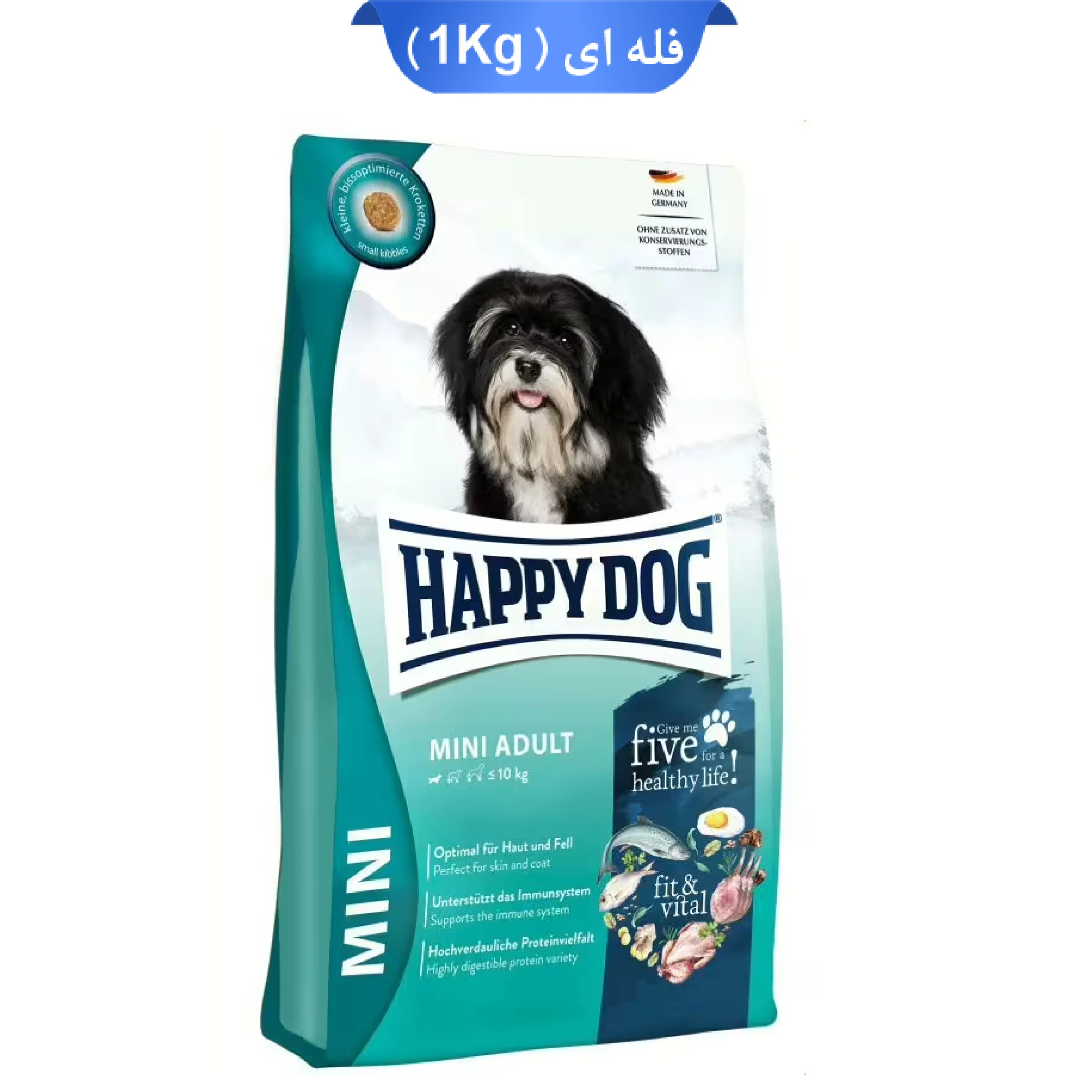 غذای خشک سگ بالغ نژاد کوچک هپی داگ مینی ادالت وزن 1 کیلوگرم (زیپ کیپ فله)