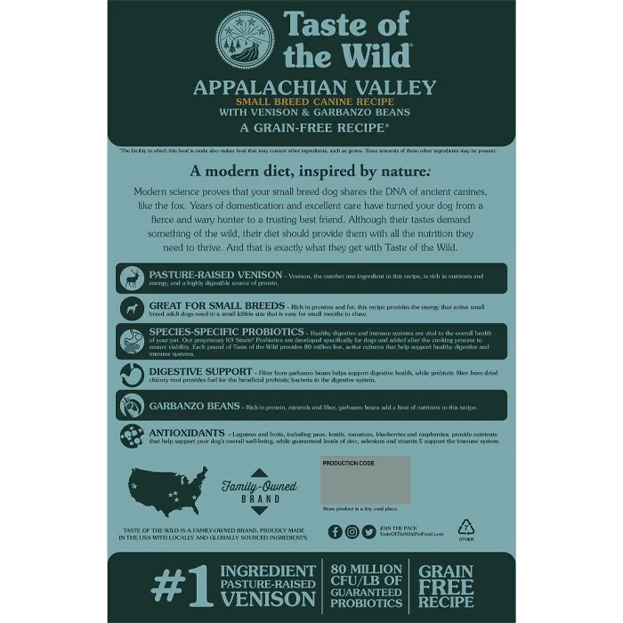 غذای خشک سگ بالغ نژاد کوچک تیست آف د وایلد طعم گوشت گوزن و لوبیا گاربانزو | Taste Of The Wild Applacian Valley