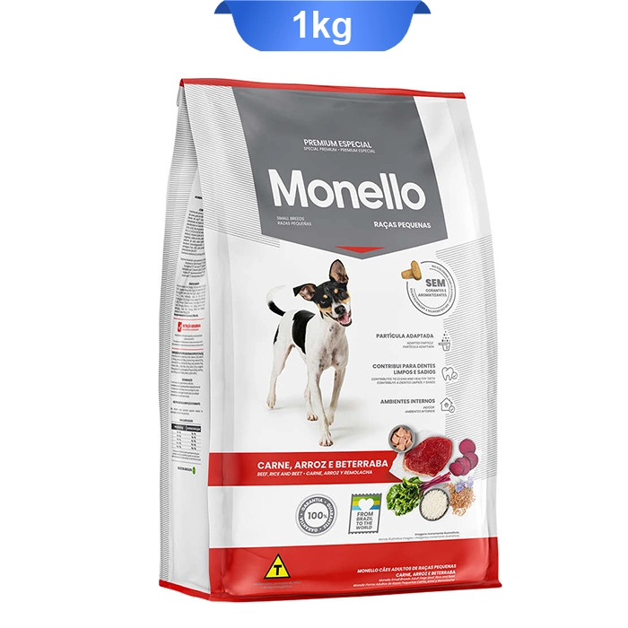 غذای خشک سگ بالغ نژاد کوچک طعم گوشت گاو + برنج مونلو (Small Bread)وزن 1کیلوگرم