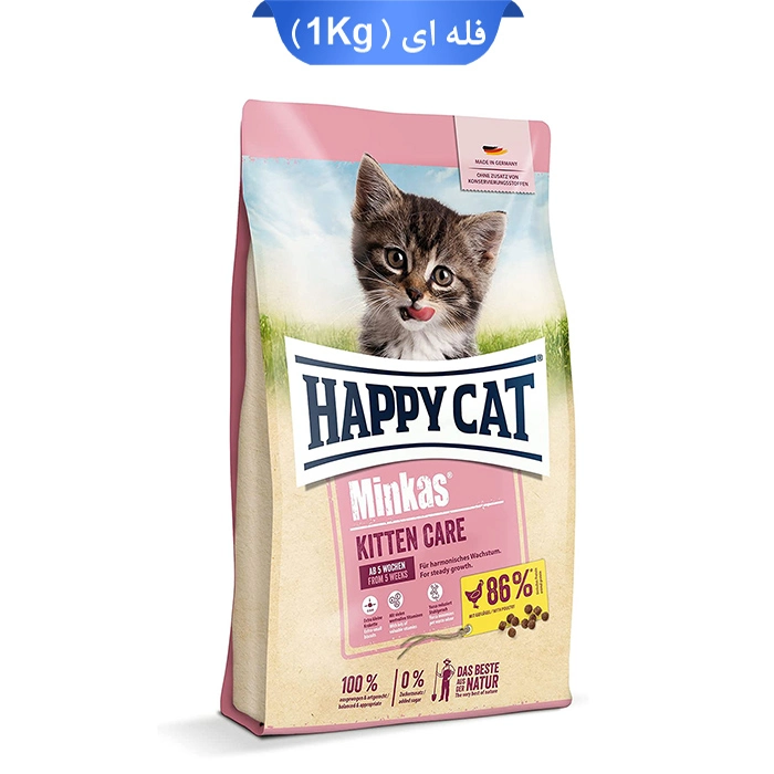 غذای خشک هپی کت کیتن مناسب بچه گربه طعم مرغ وزن (فله ای) 1 کیلوگرم|Happycat Minkas Kitten