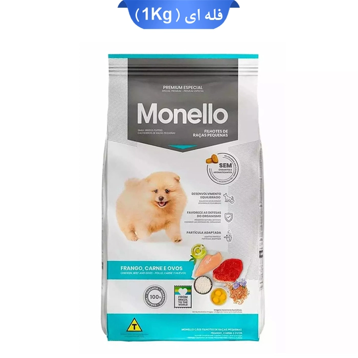 غذای خشک پاپی (زیپ کیپ فله ای) نژاد کوچک طعم مرغ و گوشت و تخم مرغ اسمال برید مونلو(Small Breed) وزن 1 کیلوگرم