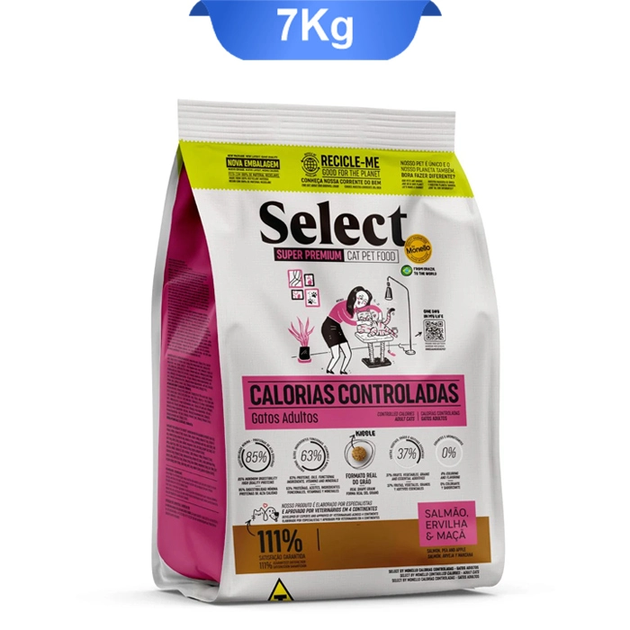 غذای گربه بالغ سلکت سوپر پریمیوم مونلو مدل کنترل کالری طعم سالمون و سیب 7 کیلوگرم