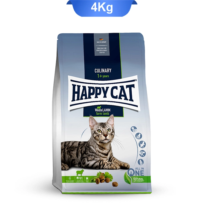 غذای خشک گربه بالغ طعم بره کولیناری سوپر پرمیوم هپی کت (Lamm) وزن 4 کیلوگرم