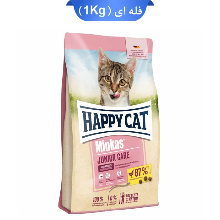 غذای خشک گربه مینکاس جونیور هپی کت طعم مرغ وزن 1 کیلوگرم (فله ای) Happycat Junior