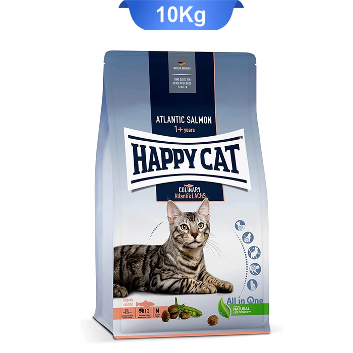 غذای خشک گربه بالغ کولیناری سوپر پریمیوم طعم ماهی سالمون هپی کت(Atlantic Salmon) وزن 10 کیلوگرم