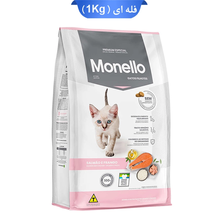 غذای بچه گربه (زیپ کیپ فله ای) با طعم مرغ و ماهی سالمون کیتن مونلو (Monello Kitten) وزن 1 کیلوگرم