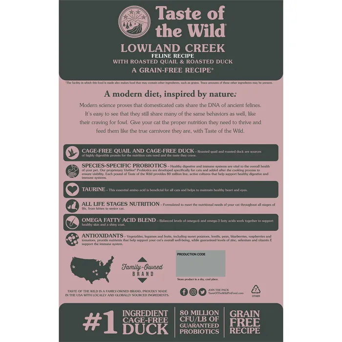 غذا خشک گربه تیست آف د وایلد بلدرچین و اردک | Taste Of The Wild Lowland Creek