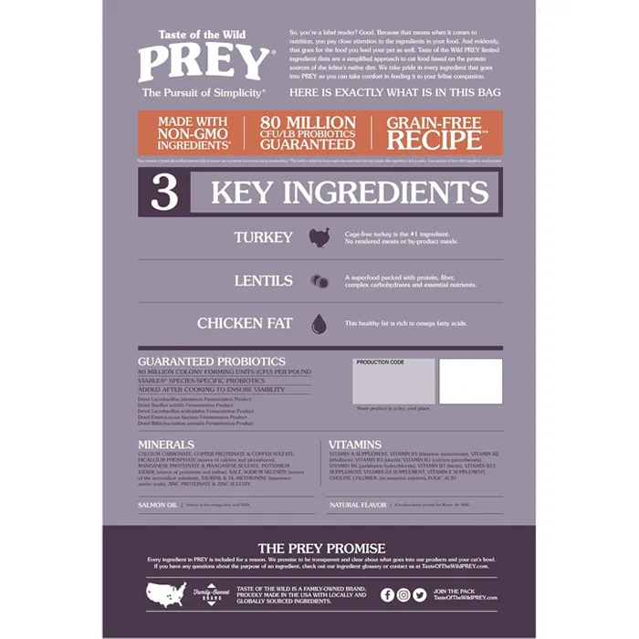 غذای خشک تیست آف د وایلد پری بوقلمون فله یکی دیگر از غذاهای پر طرفدار برند تیست اف د وایلد است که برای گربه هایی طراحی شده که رژیم غذایی بدون غلات و پروتئین های رایج مثل مرغ دارند.