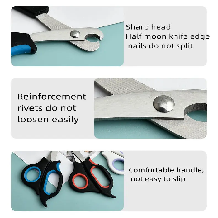 طراحی قیچی با تیغههای تیز: طراحی قیچی با تیغههای مقاوم و تیز برای کوتاه کردن دقیق و آسان ناخنهای حیوانات خانگی.