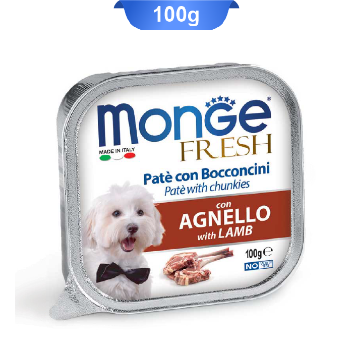 ووم سگ مونژه بالغ پته با طعم بره وزن 100 گرم – Monge Fresh | غذای کاسهای سالم و مغذی برای سگهای بالغ