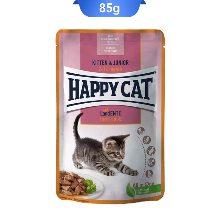 پوچ بچه گربه طعم اردک کیتن اند جونیور هپی کت (Kitten & Junior) وزن 85 گرم