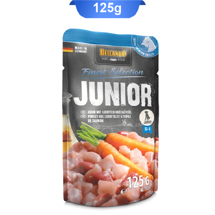 پوچ توله سگ بلکاندو با طعم مرغ و هویج Belcando Junior وزن 125 گرم