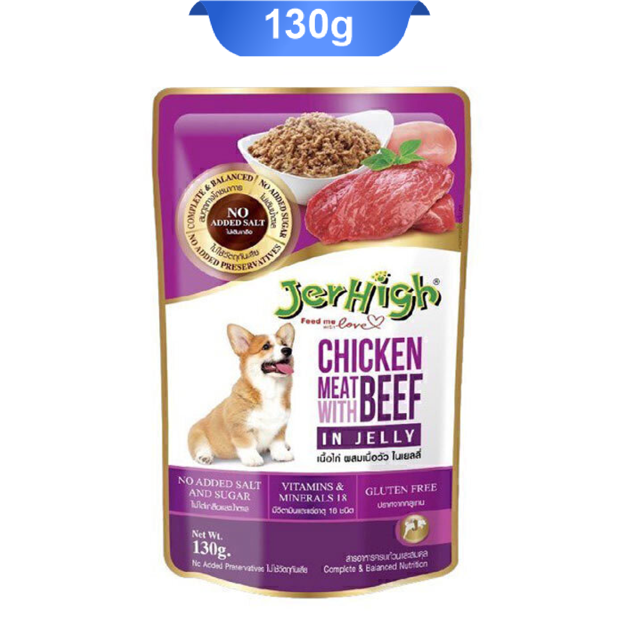 پوچ سگ جرهای طعم مرغ و گوشت وزن 130 گرم Jerhigh In Jelly