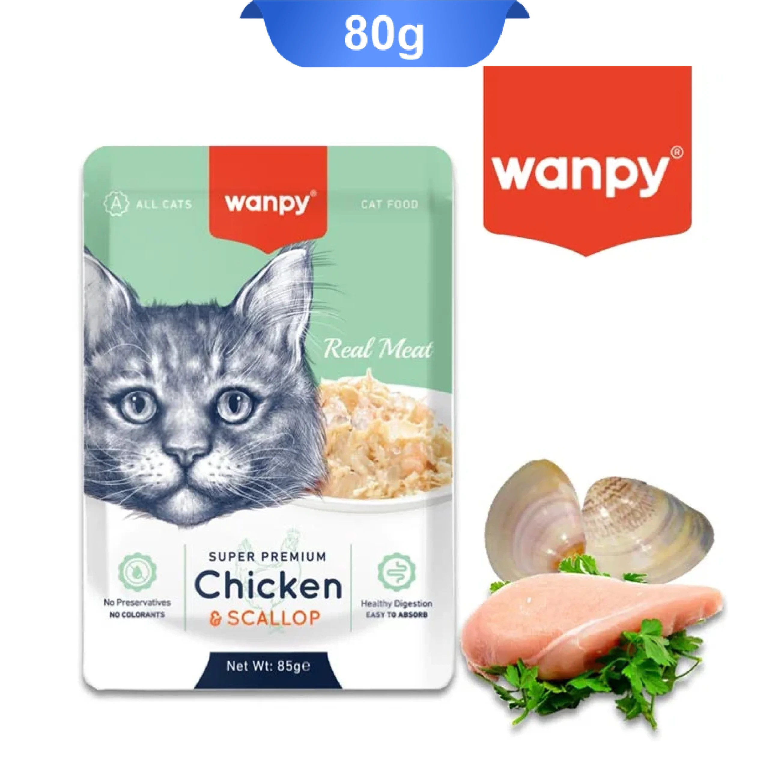 پوچ ونپی گربه با طعم مرغ و ماهی اسکالپ در ژله وزن 85 گرم Wanpy Fillet in Jelly Chicken & Scallop