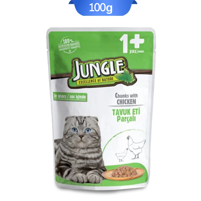 پوچ گربه بالغ جانگل طعم مرغ وزن 100 گرم Jungle Chunks With Chicken