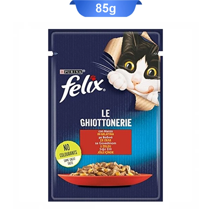 پوچ گربه طعم گوشت گاو فلیکس (Felix) وزن 85 گرم