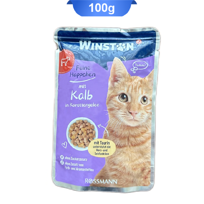 پوچ گربه وینستون طعم گوشت گوساله در ژله هویج وزن 100 گرم Winston Kalb