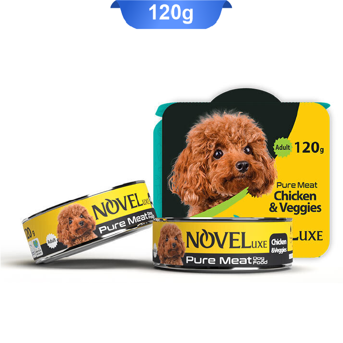 کنسرو سگ نوول لوکس نچرال طعم مرغ و سبزیجات وزن 120 گرم Noveluxe Chicken & Veggies