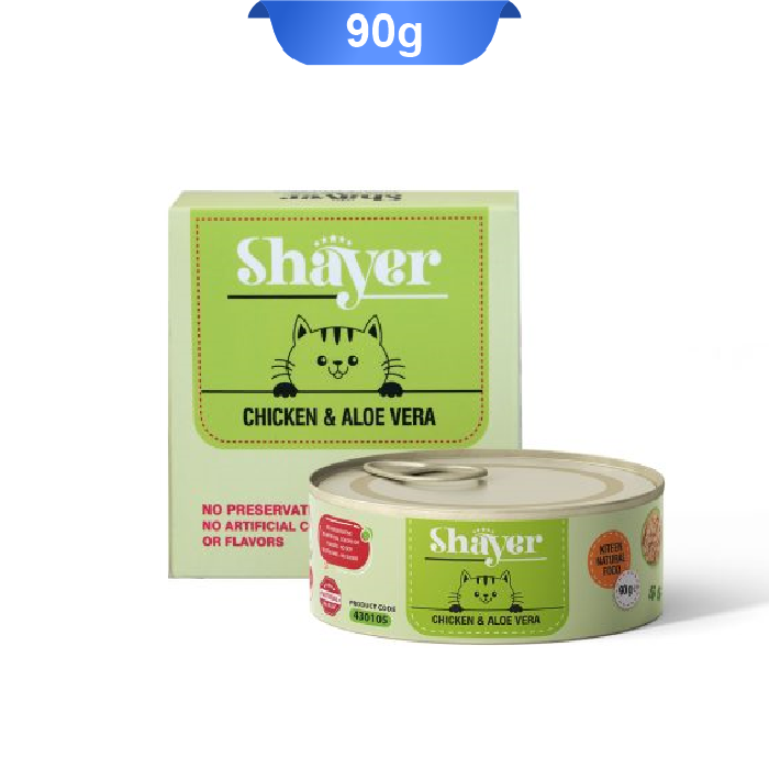 کنسرو شایر بچه گربه طعم مرغ و آلوورا در ژله وزن 90 گرم (Shayer)