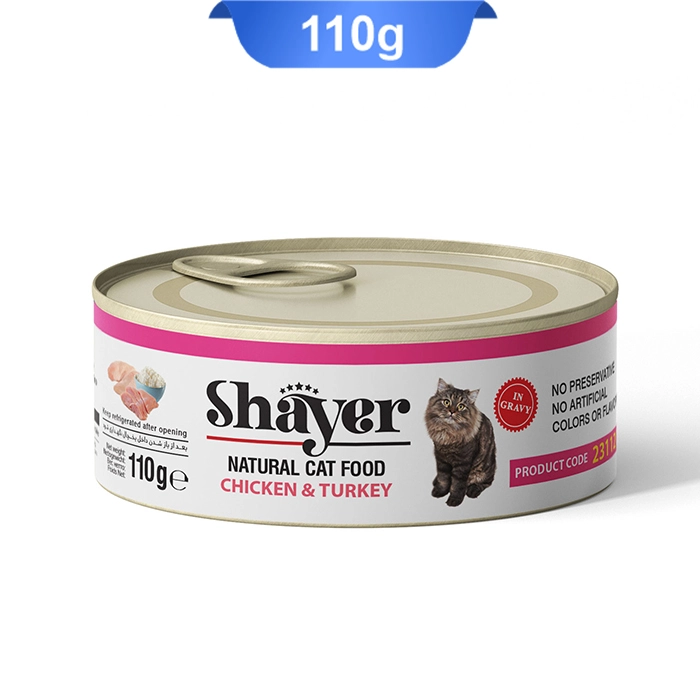 کنسرو گربه بالغ شایر طعم مرغ و بوقلمون مدل نچرال وزن 110 گرم(Shay)