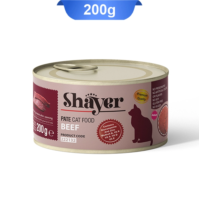 کنسرو گربه بالغ شایر(Shayer)باطعم گوشت قرمز پته وزن200 گرم