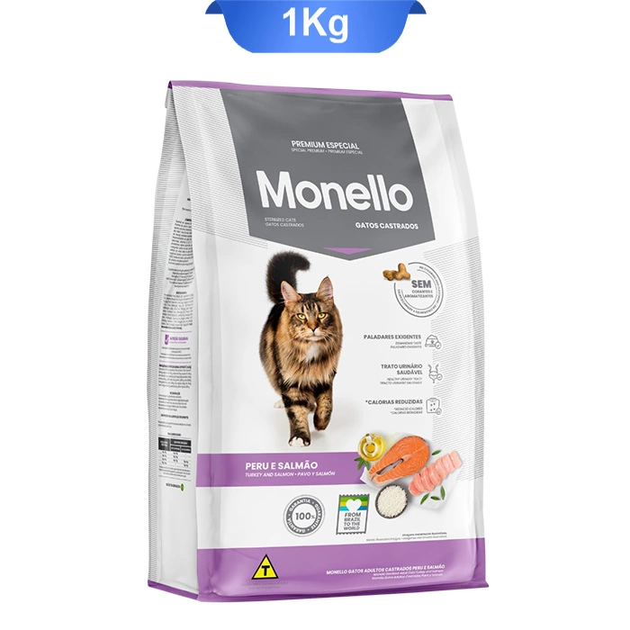 غذای خشک استرلایزد گربه عقیم شده طعم ماهی سالمون و بوقلمون مونلو (Monello) وزن 1 کیلوگرم (بسته بندی اصلی)