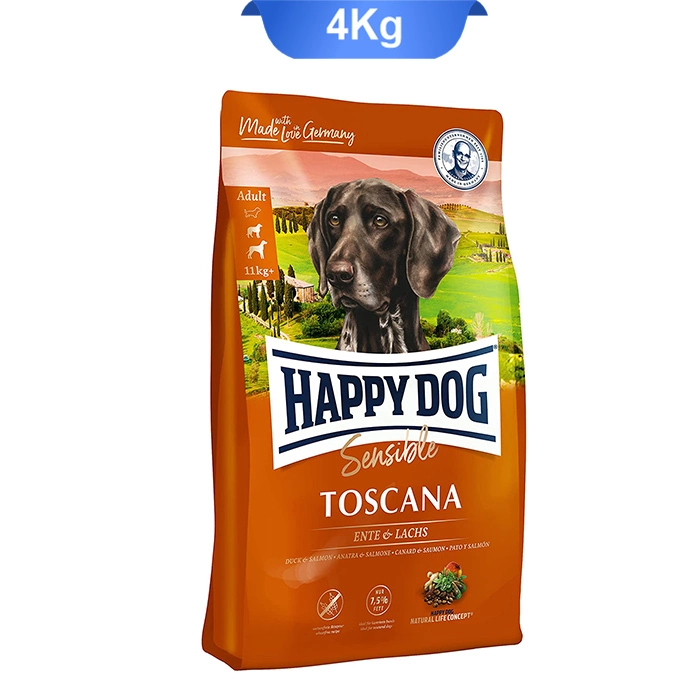 غذای خشک سگ عقیم شده طعم ماهی و اردک هپی داگ (Sensible Toscana) وزن 4 کیلوگرم
