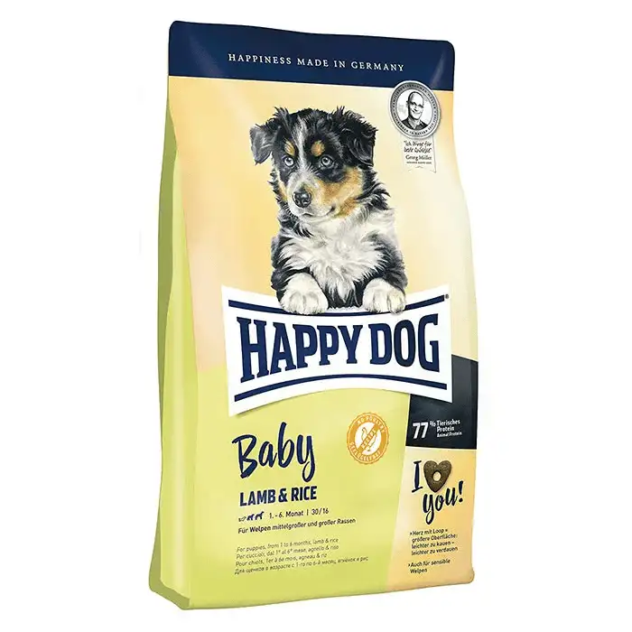 غذا خشک هپی داگ Baby Lamb & Rice غذای کامل توله سگ است که به راحتی قابل هضم است