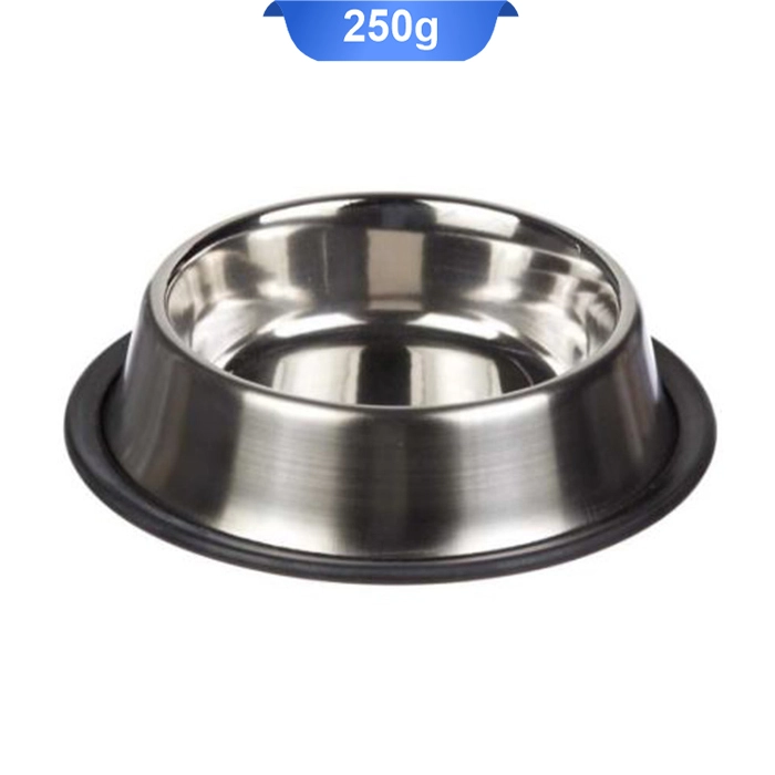 ظرف آب و غذای سگ و گربه دارای پایه های پلاستیکی ضد لغزش و بدنه استیل با کیفیت و با دوام است.