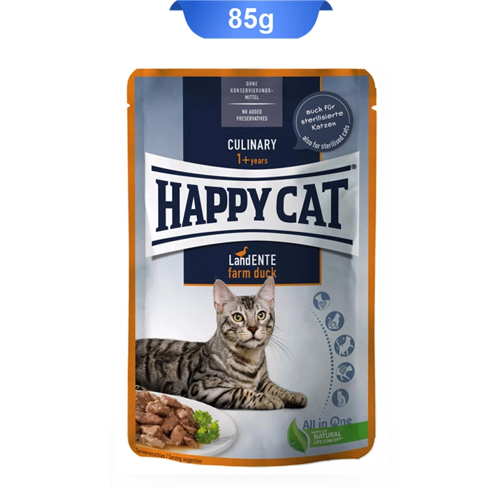 پوچ گربه کولیناری سوپر پریمیوم طعم اردک هپی کت (Culinary Duck) وزن 85 گرم
