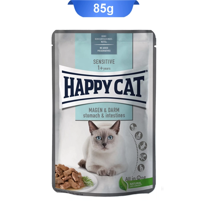 پوچ گربه هپی کت مدل Sensitive Stomach & Intestine مخصوص گربه های با معده و روده حساس است