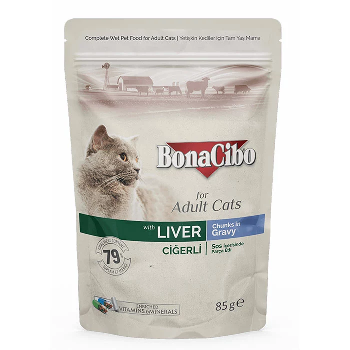 پوچ گربه بالغ طعم جگر بوناسیبو (Adult) وزن 85 گرم
