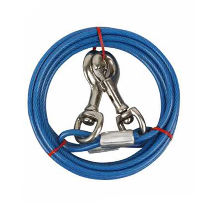 بند قلاده فولادی با روکش سیلیکونی بسیار محکم و مقاوم است دارای گیره فلزی با چرخش 360 درجه است ضخامت طناب فولادی 5 میلی متر است طناب فولادی با سیلیکون پوشیده شده است و طول آن 3 متر میباشد.