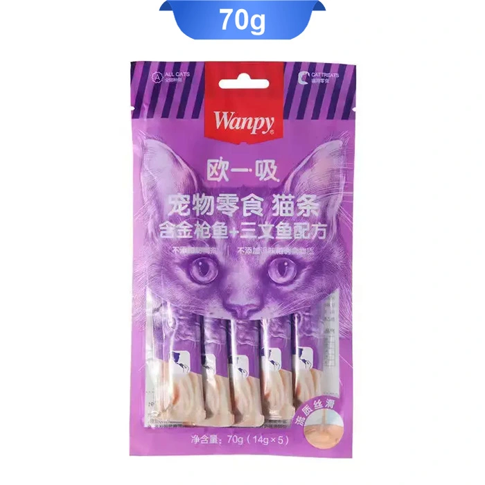 بستنی گربه طعم ماهی تن و سالمون ونپی بنفش (5عددی) (Wanpy) وزن 70 گرم